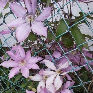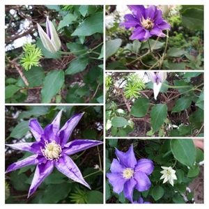 クレマチス咲き始めから、右上のは、🐛に花びらボロボロ😱💦どこにでも、出没😣