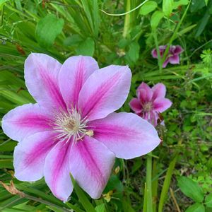 白いクレマチス、年々花が、小さくなってきました。栄養不足?😓今日も、仕事🚙💨頑張ってきます。☔