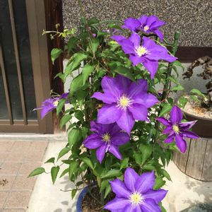 実家に5〜60年前からあるクレマチス・テッセン 迫力のある紫色の花が綺麗だな(*´ω`*)