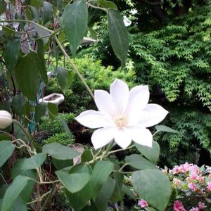 庭のテッセン、 続いては、白い花。 こちらは少し大きめ。