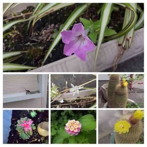 おはようございます😃 家の東側 オリヅルランがズラッと😅 可愛いお花がチラホラ❣️