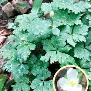 これはニリンソウでしょうか⁇ GS仲間さんが最近アップしているのをよく見かけます。 花は小さく咲いているのが1つとツボミ。葉っぱはワサワサ元気に生えてました。 20200322@静岡県焼津市