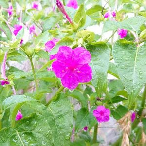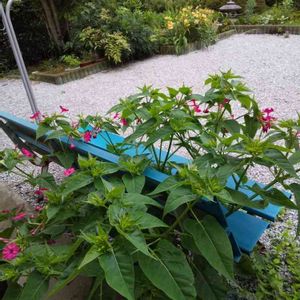 オシロイバナの花も咲いてました。 左下の2輪はまだ寝てます😂 ってか、オシロイバナは夕方から咲き出しますよね!? 朝で開ききってないってどうよ!👀⁉️