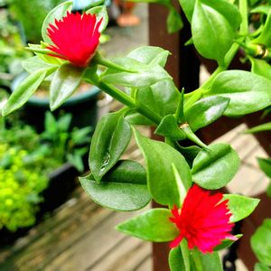 今晩は😄👋 ベビーサンロースグリーンの葉に真っ赤な花が次々に咲いてくれてます。可愛い💕