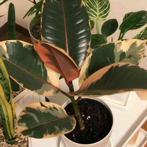 フィカスティネケ 葉っぱの模様が素敵 メルカリで購入したら 苗は立派だったけどダンゴムシさんがもれなくついてきた… 今日も1匹出てきたし 早く土植え替えよう