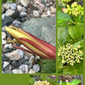 🏷️金曜日の蕾たち 参加します🎶🎶🎶 ↖︎クジャクサボテン白 明日咲きそう🤍🤍🤍🤍🤍 鉢植えのアジサイ達 色づいて来ました✌️