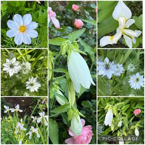🏷️白い水曜日♡ 🏷️白い貴婦人✨ 参加します🤍🤍🤍🤍🤍✨ ↖︎零れ種のコスモス開花 種蒔きニゲラ開花 白いホタルブクロ開花 白いアヤメ