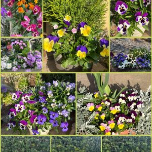 🏷️一般ジーの会♪ 真ん中3枚は 畑のほうれん草の中に溢れ種から咲いた可愛いビオラちゃん💓💓💓 ↙︎は寄せ植えダブルデッカーのチューリップはオレンジでした 後2個は咲かず😂