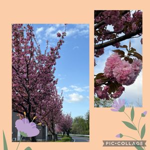 家の近くの利根川河川敷の 八重桜並木🌸🌸🌸🌸🌸 満開です🌸🌸🌸🌸🌸