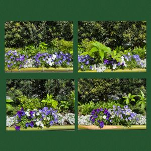 今朝の水色のお花達 🏷️水曜日は水色🩵 参加します🩵💙💜🩵💙💜 右回り タツナミソウ,2色トリアシスミレ、パンジー、ブルーデージー、パンジー、ワスレナグサ、フジ