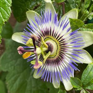 今日はパッションフルーツ🥭のお花が咲いた☺️ トケイソウ って、ちょっと気持ち悪いけど🤭立体的で芸術的なすごい複雑なお花の作り。 ほんとに時計みたい🕰 ジーッと観察してしまう🔍🧐