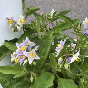 悪茄子🌱🌱ワルナスビ 道端の雑草 アスファルトからこんにちは🌱 ほんとナスの花によく似てますね〜😎🥳
