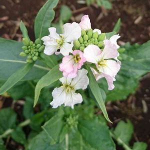 天安紅芯大根 20190329 花が咲き始めた 蕾はピンクだけど、花は白っぽくなる