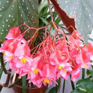 おはようございます☔️ 今日のお花 ベゴニアです💗 木立性ベゴニア 流れ星です⋆͛*͛*⭐️✨ 丁度咲いていて良かったです💕 今朝 撮影しました🤳🏻✧ ベゴニア大好きです❤️🌿 ドットな葉っぱも可愛いなぁ♡