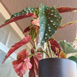 水玉模様のベゴニア流れ星✩︎⡱ 集合体恐怖症だけどこれは大丈夫👌 順調に育ってます𖡼.𖤣𖥧.
