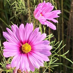 おはようございます。 まぶしい黄色、かわいいピンク。ツーショットも。😄😄 散歩にて。 ①キク科。 ②ハナシノブ科。