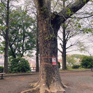 隣町の公園にあるこの木も60年以上経ち、相当大きくなり存在感をましていました。 比べるものがないと伝わらないかなぁ💦 張り紙はA4サイズ