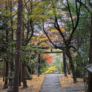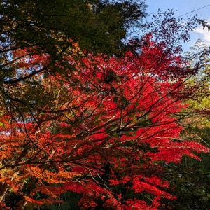 【落ち葉がサクサク】 夕方の神社 紅葉も落葉も美しい 風に舞って🍁がハラハラ落ちる情景は、絵画をみているようでした。 ①②落ち葉がサクサク ③大きな木と紅葉の重なり ④紅葉葉 ⑤加工してないけどセピア色