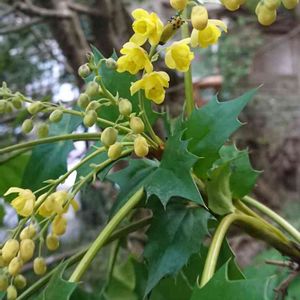 いつもの神社にて… ヒイラギナンテン コロナ退散を願う🛐