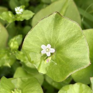 ツキヌキヌマハコベがあちこちで咲き始めました 丸い葉っぱの中からお花が🌼 とっても不思議😱可愛いです💕 ローダンセマムとアレナリアをお迎え🌟