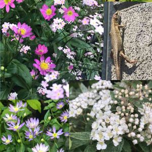 こんばんは 庭のお花です ミヤコワスレが沢山咲いています 斑入りコデマリも咲いて来ました お昼頃カマキリの赤ちゃんが生まれました 昨年は6月1日 まだ虫がいません、大丈夫でしょうか カナヘビのお母さんはブロック塀で日光浴です 皆さんどうか猫さん達に見つかりません様に 今日も見ていただきまして、ありがとうございました
