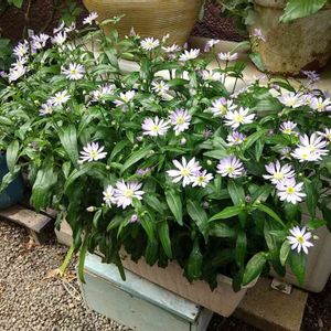 雨が梅雨みたいに 降りっぱなんで 退避させちゃった 🌿 都忘れ 🌿 フレンチラベンダー(わたぼうし) 🌿 イングリッシュラベンダー 🌿 マーガレット ✼••┈┈┈┈┈┈••✼••┈┈┈┈┈┈┈••✼ 場所はアパート隣室前の屋外通路 期間限定 未入居だからできる ( ͐◡ુ⁰ )♡