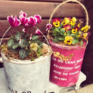 空になったペンキ缶をリメイク🥫 相方が⭐︎になったシクラメンをおひとり様に。安くなってたフリフリビオラも植えました🌸 まだまだ植え替えしたいものもあるけど、やっぱり寒すぎて限界…
