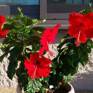 おはようございます☀️😀💦 今日のハイビスカス🌺 レッドバタフライちゃん。今朝は、4輪咲いてくれました🌺🌺🌺🌺 ♬︎•*¨*•.¸¸♬︎•*¨*•.¸¸♬︎•*¨*•.¸¸♬︎•*¨*•.¸¸♬︎(✿◠‿◠ 今日も一日笑顔で頑張りましょう😀😀😀💓