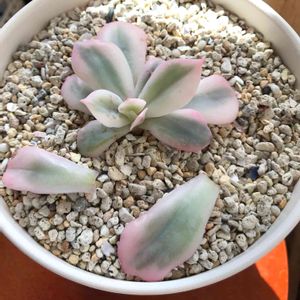 インブリカータ錦の様子が良くないから この時期にと思ったけど 何にもしないでサヨナラなるよりはいいと思い 思いきってカット‼︎ うーんやっぱ茎の部分が少しだけ黒くなり始めてた、、、 葉をとって葉挿しに挑戦‼︎ 朝から自分でも勇気あるなーと思う 夏までに根が出る事を祈ります‼︎