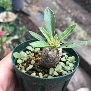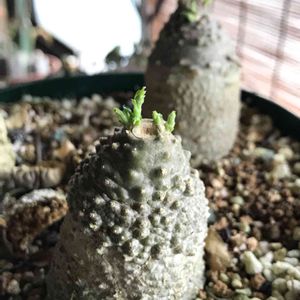 去年蒔いたパキポディウムの何かです。 周りにたくさんいるのは今年うちで大繁茂していたハゼランです。わざわざ種を蒔くとなかなか育たないのに、勝手に生えてきた奴らはやたらと丈夫に育ちます( ´_ゝ`)