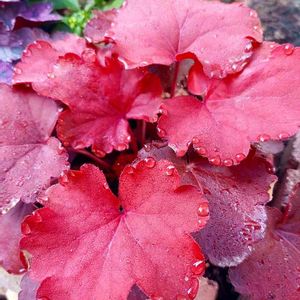 ヒューケラドルチェ。こちらは気温が低いとチェリーを煮詰めたような色合いになる!渋いよー♪