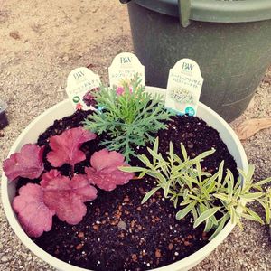 育てる寄せ植えを作りました。 初心者なので、とりあえず好きな花を植えました! キレイに育ってくれるといいな