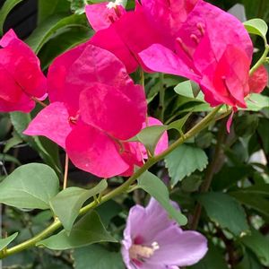 ブーゲンビリア バリエガータ 枝が伸びて広がり樹形が崩れてきたので剪定したところ、急に花を咲かせ始めました。 花芽をいっぱい切っちゃったかな?💦 いや、剪定の刺激でスイッチが入ったと信じたい!
