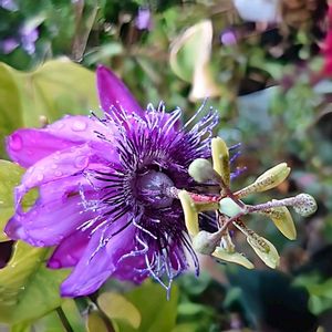雨の庭に 咲いています (人*´∀`)。*゚+ 🩷🤍🩵💙🩷🤍🩵🩵トケイソウ