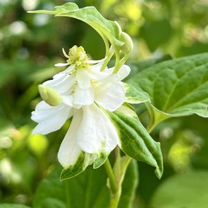 おはようございます 今日のお花 ウツギ うちの子はヒメウツギかと思われます 先月バルコニーで、朝日に輝いて咲いていました 今日も暑くなりそうで、涼しげな白い花に目がいきます