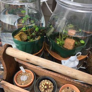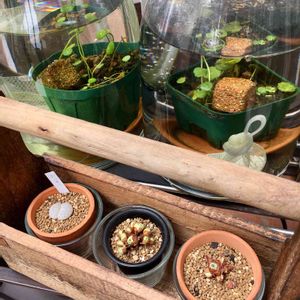 とっても きれいな状態で届いて 無農薬なので 直ぐメダカ鉢にも浮かべられます 赤玉土に植えつけた一株が 左の様にあっと言う間に増えました お気に入りのお店です 多毛たちのグッズでも お世話になってます 以下 販売店Charm さんの 詳しい育て方 【販売名】 ルドウィジア セドイデス 【別名】 ウキバルドウィジア ルドウィジア セディオイデス ウォーターダイヤ コビトヒメビシ ミニハナビシ 【学名(※)】 Ludwigia sedoides sedoides[Sedum(べんけいそう科の植物に似た)]という意味。 (※)…改良品種や学名が不明の種は流通名での記載の場合があります。 【分類】 アカバナ科(Onagraceae)チョウジタデ属(Ludwigia) 【分布】 南米 【育成要件】 CO2 → 要 光量 → 60cm20W3灯以上 温度 → 20~28度 水質 → 中性~弱酸性 【どんな種類?】 アカバナ科(Onagraceae)の植物。ヒシのような浮葉を持ち、強光下で真っ赤に染まり菱形の葉が整然と並んで描く円は大変綺麗なルドウィジアの仲間です。 葉序は互生、有柄、葉の表面は無毛ですが葉の裏は有毛です。葉縁は葉の基部から半分まで全縁、葉先にかけて鋸歯です。 一見ヒシのように見えますが、水上で咲かせる黄花でルドウィジアの仲間であることがわかります。 強光と高温度(24度~)を必要とし、夏場はビオトープで楽しめる1種です。 【育成のコツ】 60cm水槽で3灯以上、酸性~弱酸性、ソイル、CO2添加あり、液肥主体の施肥で育成しやすいです。 そのまま茎ごと浮かしていても育ちますが、植えると状態よく育ちます。 水辺植物におすすめの鉢はこちら! 角型タライオリジナルスイレン鉢トロ船黒発泡ビオトープ大型発泡スイレン鉢池 関連特集ページを一挙ご紹介! スイレン、ハスをはじめ数多くの水辺植物関連の特集ページをご用意しております。是非ご参考ください! 水辺植物・観葉植物について ・時期や育成状態によりサイズや葉数、色、量、花及び花芽の有無等が画像と異なる場合がございます。 ・植物の特性により栽培上での花や葉の特徴等が画像と異なる場合がございます。 ・お届けまでに2日以上かかる地域は、種類によっては品質の保証ができない場合がございます。 スイレン・ハスの発送について ・育成状態によりサイズや葉数、色、量、花及び花芽の有無等が画像と異なる場合がございます。 ・発送の都合によりポットから外した状態(根茎や蓮根のみ)での発送となる場合がございます。 ・発送時期や入荷時の状態により新芽が2~3枚出ている状態での発送となる場合がございます。 ・1ポット=1株の販売となります。 ・植え付けに使用の土は臭う場合がありますが、問題ございませんのでご安心下さい。 ポット表記の植物について ・ポット表記の種類はそれに相当する量での発送となる場合がございます。 ・1ポットあたりおおよそ1~3株(本)程度の量となります。 ・ポット販売の商品は種類によってはポットから出しての発送となる場合がございます。 (受け皿等は撮影用の物です。付属しません。) 植物の管理上の注意点 生きた植物の野外への放棄、または自然湿地への植栽は、在来の水辺植物群への大きな悪影響が懸念されます。 外国産の種類はもちろん、同じ日本産の植物であっても産する地域毎に固有の遺伝子を持っており、各種自生地における他産地の植物の植栽は雑種化 及び遺伝子汚染を引き起こし、その土地固有の植物群を破壊してしまう恐れがあるため、 購入された植物の野外への放棄、または自然湿地への植栽は絶対に行わないようお願いいたします。 商品名の表記について 商品名の(ビオトープ)(観葉)等は商品管理用の文字列です。 スイレンの植えつけ方について ■根茎の下処理 ・根茎を傷つけないように丁寧に土を取り除きます。 ・一度掘り起こされた古い根は腐り落ちるので鋭利なハサミ等で切り落とします。 ・根茎が痛んでいないか確認します。痛んでいる根茎はブヨブヨと柔らかく掴むと崩れます。 ・作業中はスイレンは乾燥させないよう気をつけてください。 ■水鉢・土の準備 ・しっかりとして水平の取れた土台の上に水鉢を設置します。 ・水鉢の底に2、3握り程度の少量の土を入れ、10粒未満の固形栄養素と混ぜ合わせます。 ・その上から土を水鉢の半分程度まで入れます。 ・メダカなどの生体を入れる場合は水深が10cmより浅くならないようにしてください。 ■植え付け・仕上げ ・根茎は横方向に寝かせるように配置し、新芽が出ている部分を埋めないよう丁寧に植え付けます。 ・植え付けの際は、成長点(新芽の出ている方向)が水鉢の中心を向くように植えます。 ・別売りの硬質粒状ソイルを上部に薄くしくと、泥の舞い上がりによる水の濁りを抑えることができます。 ・水鉢の土が舞い上がってしまわないよう、小さな受け皿や新聞紙を敷いて静かに水を注ぎます。 ・メダカやエビなどの生体を入れる際は、カルキを抜いてから投入します。 ・タニシなどの巻貝はセット直後に投入しても特に問題はありません。 スイレンの冬季販売・管理