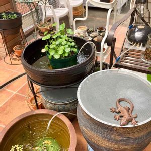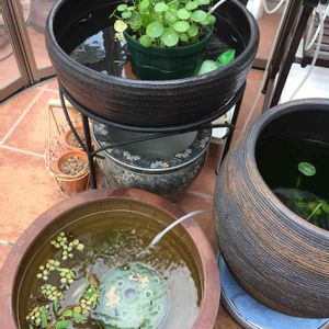 水換えした鉢 明日水が立ち上がったら 我が家の一番綺麗なメダカ達を 泳がせませぅ