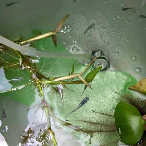 水換えした ダルマメダカたちの瓶 ろ過材入れたら 茶ゴケは付かなくなったけど ミドリ水にはなるね 透明な極上なミドリ水 稚魚育てるには最高の水だけど