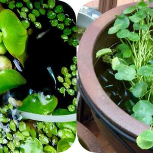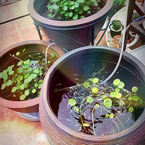 おはよう そろそろメダカ鉢の ウォーターマッシュルーム トリミングしないと