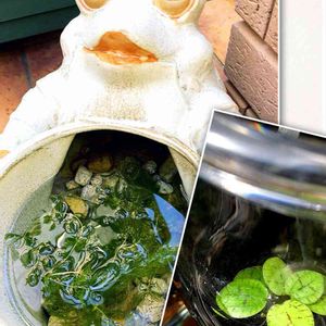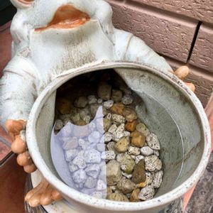 御さい銭 投げたい感ない? カエルに雨水たまって いい感じに水が立ち上がってる メダカ入れようかな?