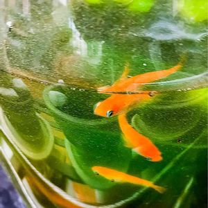 金魚も目覚めたね 2016年9月頃生まれ メダカの針子と 同じ大きさだった とは信じられません いつも名前忘れたちゃう 水草も一緒に 越冬して 元気に伸びてきたー!