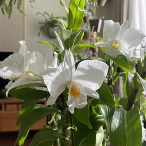 ♡「デンドロビウム・ フォーミディブル」♡ 息子夫婦から デンドロビウムを 頂きました〜❀(*´▽`*)❀ 真っ白で黄色のリップ💛 とても綺麗です〜✨️ (୨୧•͈ᴗ•͈)◞ᵗʱᵃᵑᵏઽ*♡