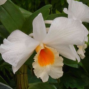 今日も酷暑予報です朝から30°C突破してますね。水分補給しっかりしていきましょう。 上段 オニユリ👹👹👹今年も元気に咲いて、夏☀️🍉🌻🏊って感じ。 下段 デンドロビウム フォーミディブル パカッと開花宣言❣️真っ白なお花が涼しげ🎐🫧