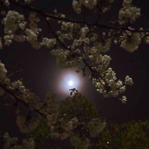 酔っ払って帰りの公園で、 傘をさしてライトアップもされてない桜を撮る。 そんな私に空がくれたご褒美は、 雨雲の隙間からほんの少しの間顔を出した月だった。 まあ…ただの不審者カモ知れない。