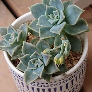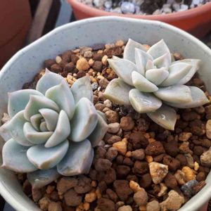 名無しちゃん 名無しのまま半年、 朧月? 下葉は枯れつつ、元気そうです😊 薄氷(姫朧月.グラプトベリア属) と、教えていただきました😊 今日から名前有り❣️ ありがとうございました😊