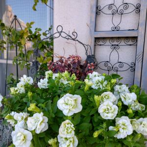 ペチュニアピュアブーケ 4月23日(土)にお迎えしました 前回の投稿が7月2日(土) 綺麗な八重咲きのペチュニアですが 切り戻ししても2~3週間ですぐにお花が咲き揃います‼️ 大人っぽい上品な白色のペチュニアに目に釘付けです(笑)