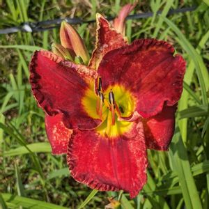 ヘメロカリス"品種不明 赤花" 品種は分かりませんが、かなりフリフリな花です!花弁が分厚いので豪華ではありますが、なかなか花が完全に開かないのが難点ですね😅
