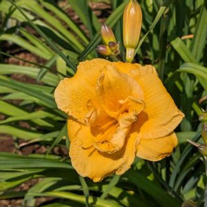 八重咲きヘメロカリス"品種不明" 八重咲きのヘメロカリスが開花しました😍😍 品種は分かりませんが、ステラデオロを八重咲きにした感じの花ですね! かなり強健なので毎年どんどん花数が増えています👍