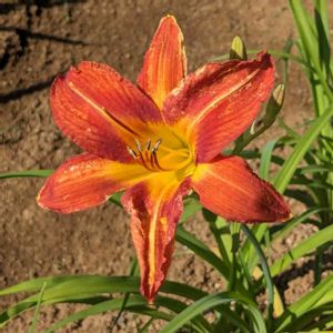 ヘメロカリス"クリミアンクリムゾン" 2022年の交配に用いた品種ですね! 花弁が厚く真紅の花色が特徴的です👍 春に場所の移動のため植え替えしたので今年葉花付きはイマイチです😅