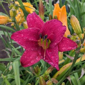 ヘメロカリス"赤紫" やや花がコンパクトなヘメロカリスです! 周囲のヘメロカリスが黄色系ばかりなのでよく花が目立ちますね😆😆